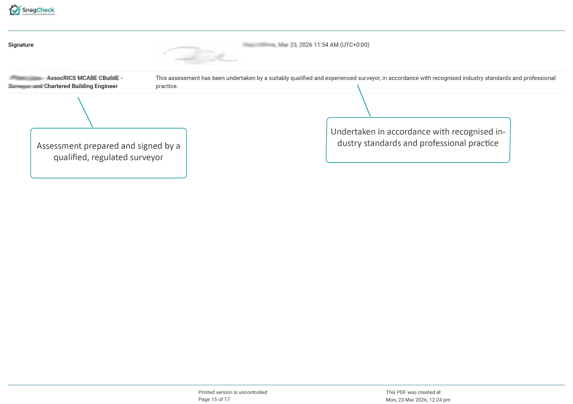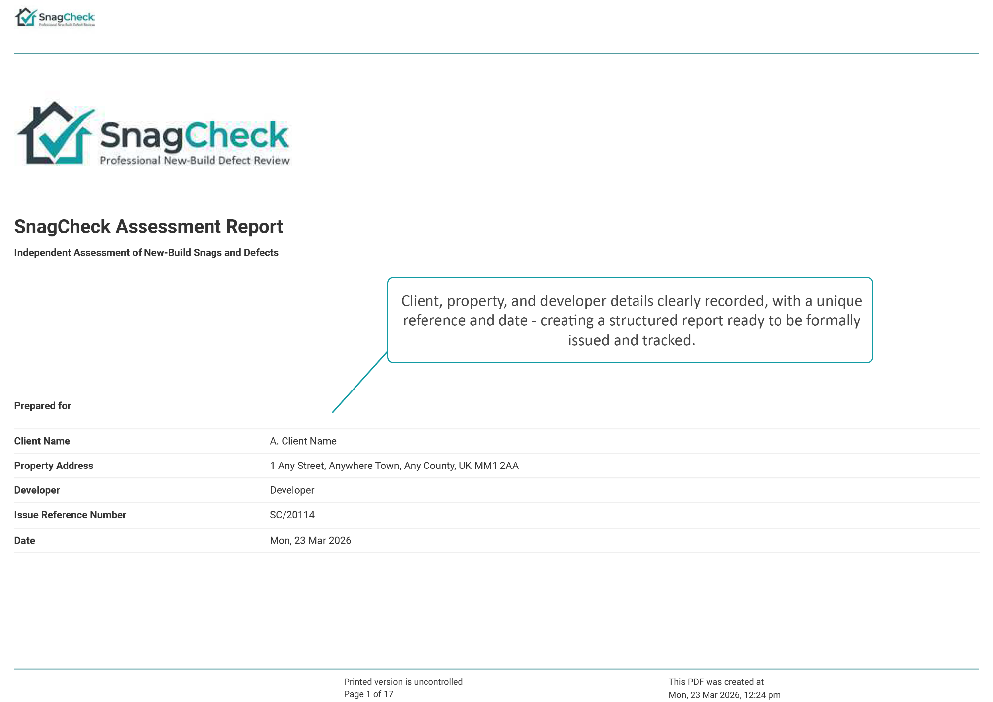 Example SnagCheck Assessment Report